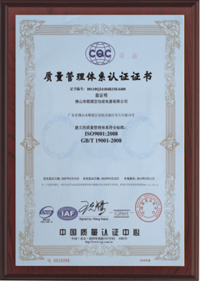 企業(yè)通過IS09001:2000國際體系認證,并全面嚴格按照IS09001:2000體系進行運營管理。企業(yè)是中國土木工程學會燃氣分會會員單位、廣東家電商會會員單位、順德燃氣具商會會員單位、順德家電商會會員單位,公司是國家出口產品二類企業(yè),公司主要產品出口北美和歐洲地區,公司一貫堅持質量、信譽至上...